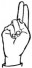 На ћирилици написано РУМЕНА ОСМАНАГИЋ састоји се из 15 слова [?]. Исписано ћириличном једноручном азбуком за глувонеме: